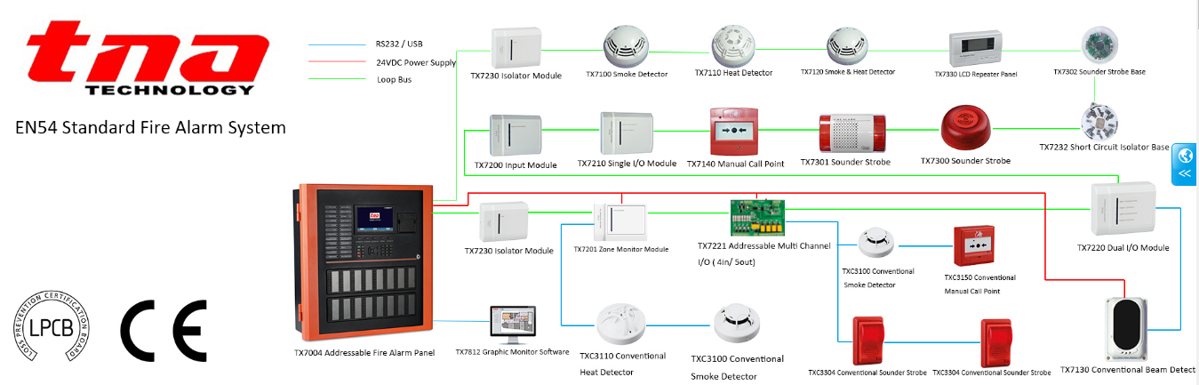การทำงานของระบบแจ้งเหตุเพลิงไหม้ ( Fire Alarm System) เมื่อเกิดเหตุเพลิงไหม้หรือมีกลุ่มควันเกิดขึ้นจะถูกตรวจจับด้วยอุปกรณ์ตรวจจับควัน (Smoke Detector) หรืออุปกรณ์ตรวจจับความร้อน (Heat Detector) และส่งสัญญาณไปยังตู้ควบคุม (Fire Alarm Control Panel) จะส่งสัญญาณไปยังอุปกณ์แจ้งเตือนเหตุเพลิงไหม้ด้วยอุปกรณ์แจ้งเหตุด้วยเสียง, แสงหรือทั้งเสียงและแสง (Alarm Bell, Horn, Speaker, Strobe) เพื่ออพยพคนออกจากสถานที่เกิดเหตุได้ทันลดการสูญเสียชีวิตและทรัพย์สินต่างๆภายในอาคาร